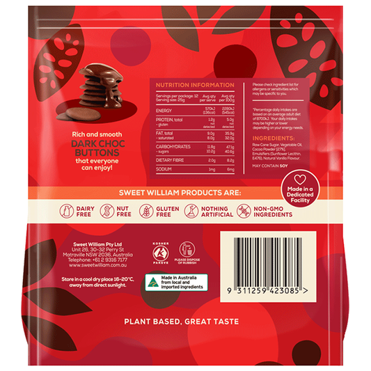 Sweet William Vegan Dark Chocolate Baking Buttons (300g)