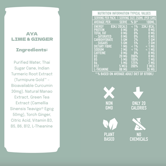 AYA - Sparkling Turmeric Blend - Zero Sugar Lime & Ginger (250ml)