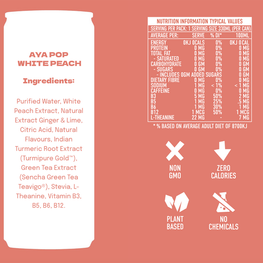 AYA Pop- Sparkling White Peach (No sugar) (330ml)