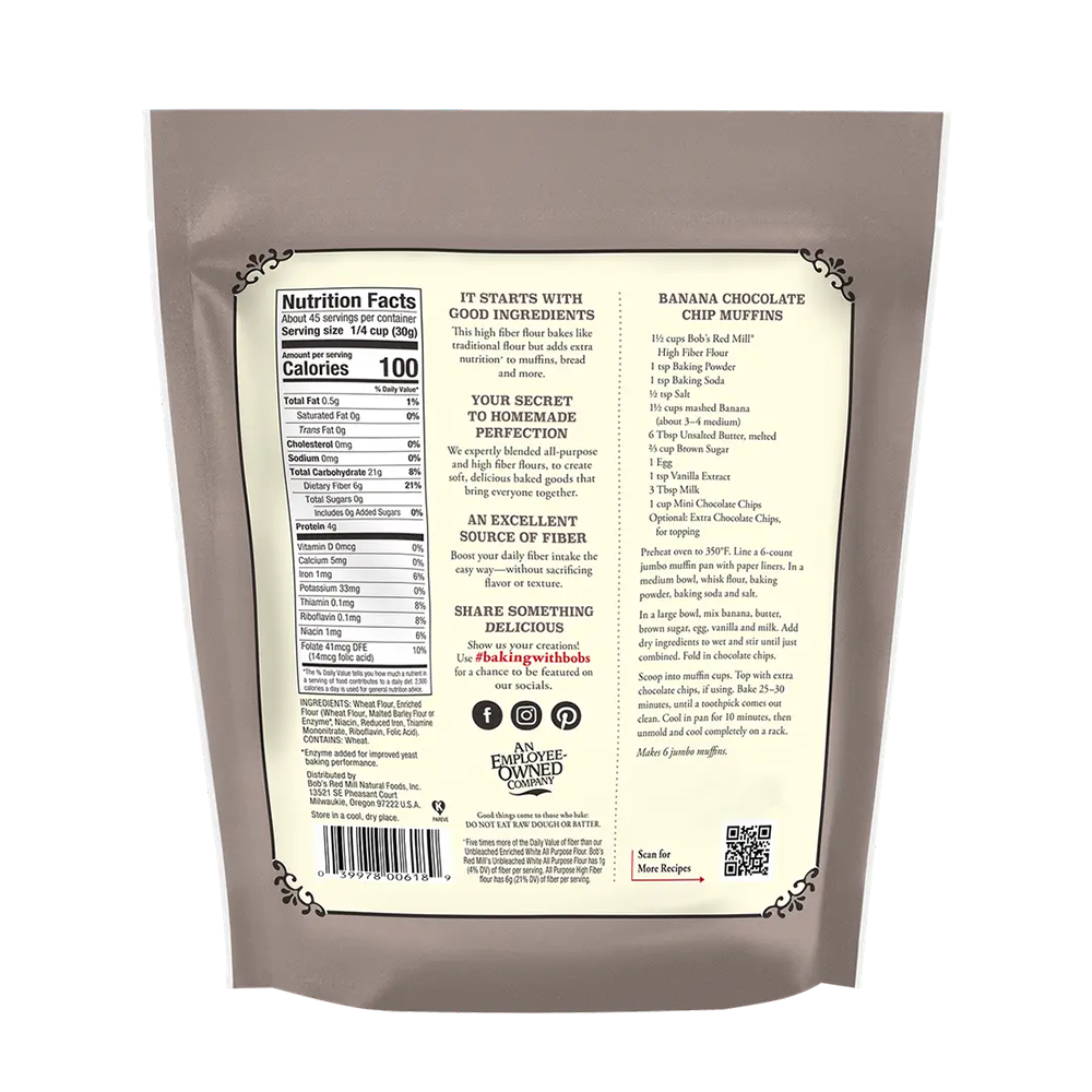 • FIBER THEY’LL LOVE TO EAT: Made with resistant starch, a prebiotic fiber that feeds beneficial gut bacteria, Bob’s Red Mill High Fiber Flour offers a simple, delicious way to boost your everyday nutrition