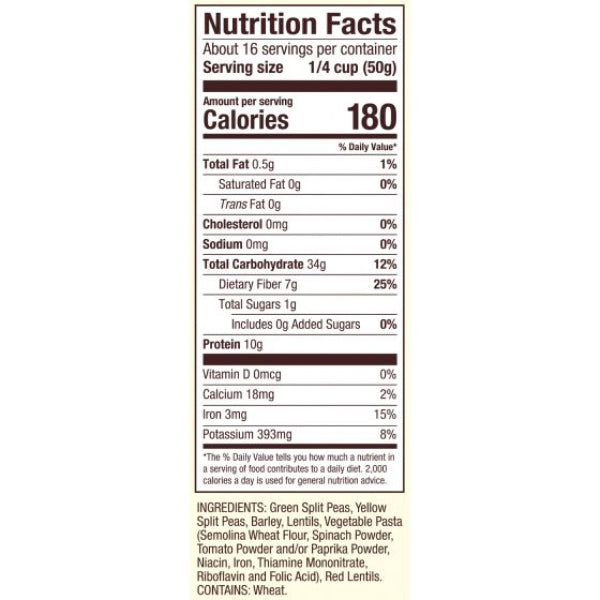 Our Vegi Soup Mix is made from a hearty combination of green split peas, yellow split peas, barley, lentils and pasta. It is unseasoned, so you can add your own favorite herbs, spices and salt to taste..