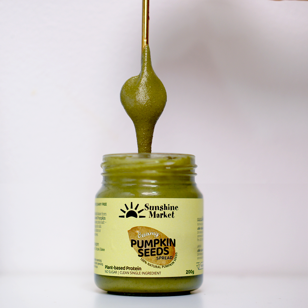 Sunshine Market’s Creamy Pumpkin Seed Spread! Made from 100% pure pumpkin seeds, this smooth and rich spread adds a delightful twist to your toast, smoothies, or snacks. Packed with natural flavor and wholesome nutrients, it’s the perfect playful pick-me-up for any time of day.