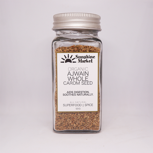 Aromatic and slightly bitter, carom seeds are a traditional spice known for their digestive and antibacterial properties. Common in Indian cooking and Ayurvedic remedies.