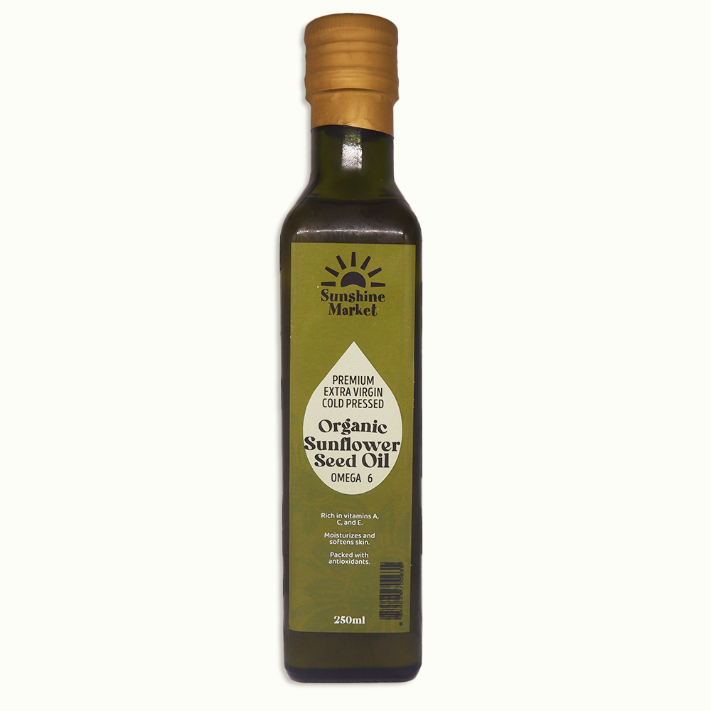 Organic Extra Virgin Sunflower Oil – cold-pressed and unrefined, made from premium sunflower seeds to deliver a light, clean taste and powerful nutrients.