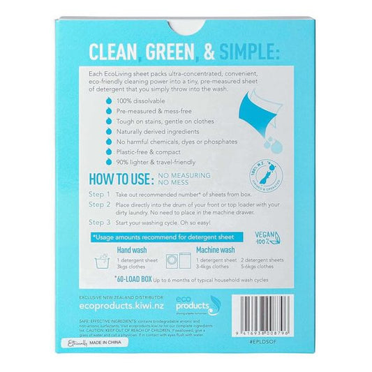 แผ่นน้ำยาซักผ้าอีโค่ลีฟวิ่ง - โอเชียนเฟรช (60 แผ่น)