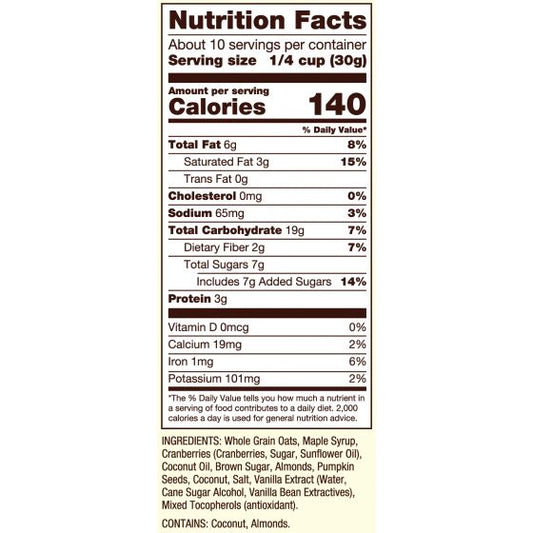 บ็อบส์ เรด มิลล์ กรานอล่า แครนเบอร์รี่ อัลมอนด์ อบกระทะ ปราศจากกลูเตน (312 กรัม)