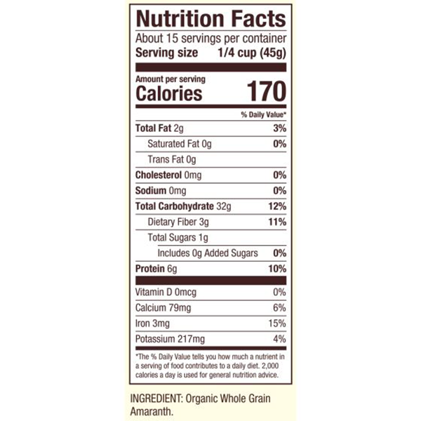 - อะมารันต์เป็นแหล่งโปรตีนที่สมบูรณ์และปราศจากกลูเตน โดยมีกรดอะมิโนที่จำเป็นทั้งหมด รวมทั้งไลซีน ซึ่งขาดหายไปในธัญพืชส่วนใหญ่