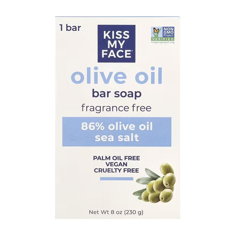 เพลิดเพลินไปกับพลังแห่งความชุ่มชื้นของน้ำมันมะกอกในขณะที่คุณทำความสะอาดด้วยสบู่ก้อนน้ำมันมะกอก 86% Kiss My Face สบู่ก้อนปราศจากกลิ่นนี้มีคุณสมบัติดังนี้: